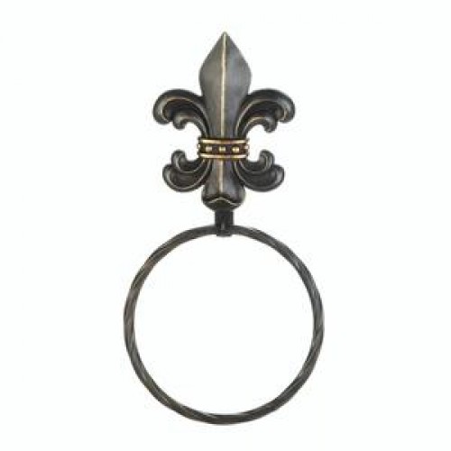 Even keeping your hand towel handy is a stylish affair when you add this beauty to your wall. This twisted towel ring features a bold French fleur-de-lis ornament on top.